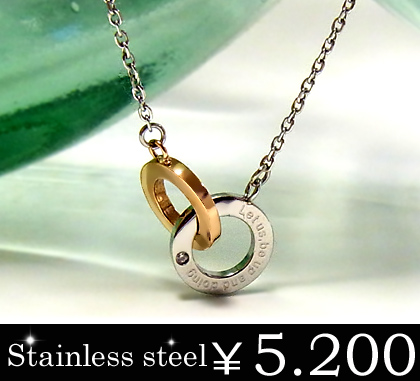即納 送料無料 2リングメッセージステンレスネックレス/ピンクゴールド/ステンレスアクセサリー/CZ/プレゼント/ギフト/aut_la