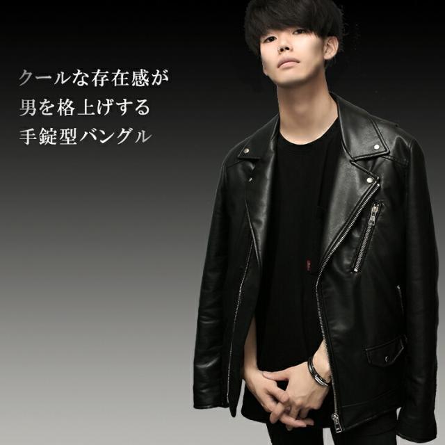 メンズ ブレスレット バングル ブラック ハンドカフ 手錠 サージカルステンレス メンズブレスレット 腕輪 ブレス 金属アレルギー ステンレス