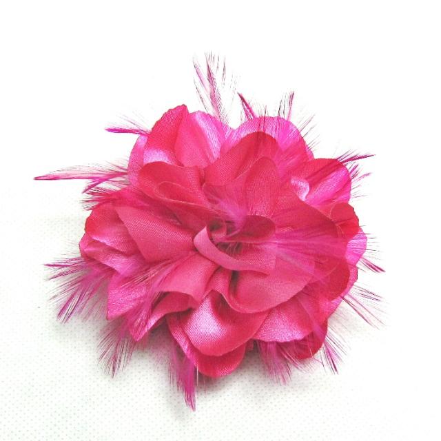 DCX013 ピンク 浴衣・結婚式・花・入園式・卒園式・パーティー・二次会・髪飾り・羽付コサージュ・クリップ2WAYタイプ