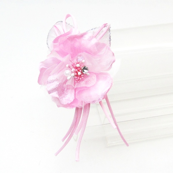 DCX016 ピンク 浴衣・結婚式・花・入園式・卒園式・パーティー・二次会・髪飾り・羽付コサージュ・クリップ2WAYタイプ