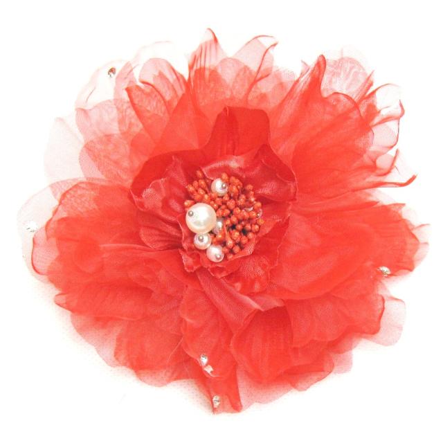 DCX024 レッド 浴衣・結婚式・花・入園式・卒園式・パーティー・二次会・髪飾り・羽付コサージュ・クリップ2WAYタイプ