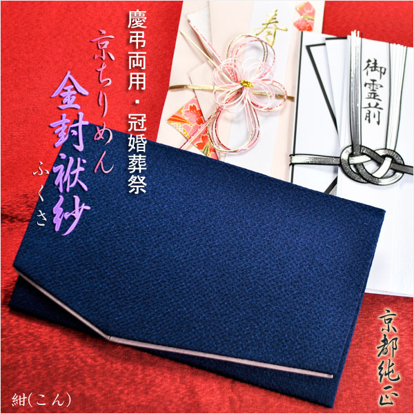 国産京都【金封ふくさ:京ちりめん 紺】慶弔両用タイプ・冠婚葬祭 ネコポス無料