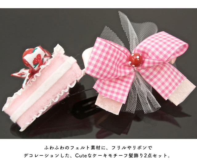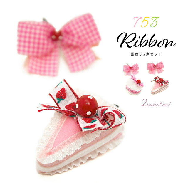 七五三 髪飾り 三歳 2点セット お正月 ひな祭り ショートケーキ リボン チュール ピンク スリーピン パッチン留め 髪留め ヘアアクセサリー キッズ 子供用 女児 和装