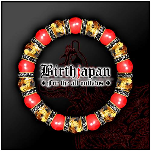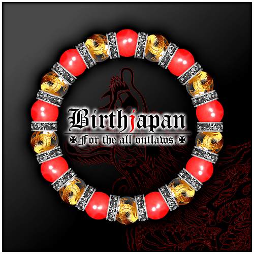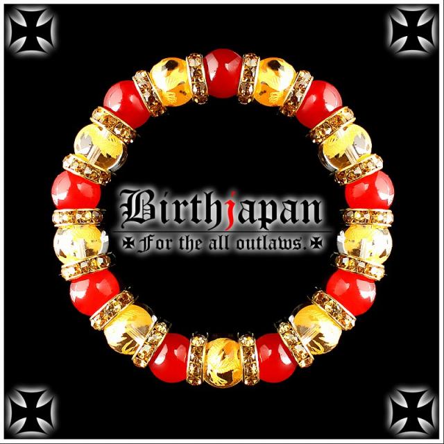 10mm ロンデル×金龍水晶 カーネリアン数珠ブレスレット メンズ開運祈願パワーストーン ヤクザやくざチョイ悪オラオラ系悪羅悪羅系 悪党の店 バースジャパン BIRTHJAPAN