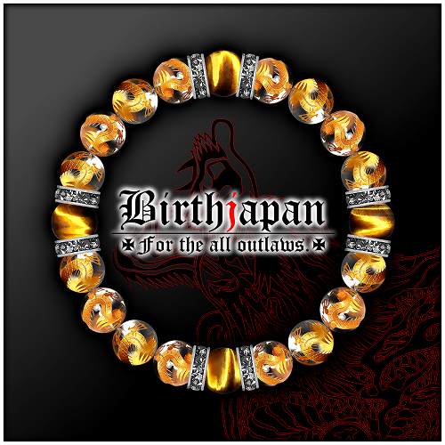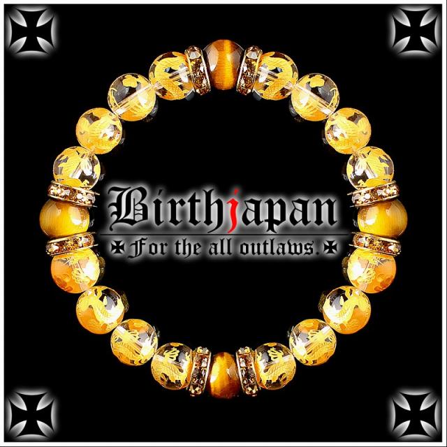 10mm ロンデル×金龍水晶 虎目石タイガーアイ数珠ブレスレット メンズ開運祈願パワーストーン ヤクザやくざチョイ悪オラオラ系悪羅悪羅系 悪党の店 バースジャパン BIRTHJAPAN