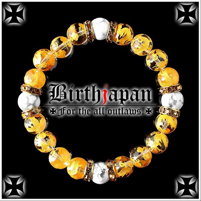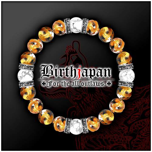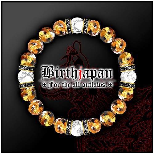 10mm ロンデル×金龍水晶 ハウライト数珠ブレスレット メンズ開運祈願パワーストーン ヤクザやくざチョイ悪オラオラ系悪羅悪羅系 悪党の店 バースジャパン BIRTHJAPAN