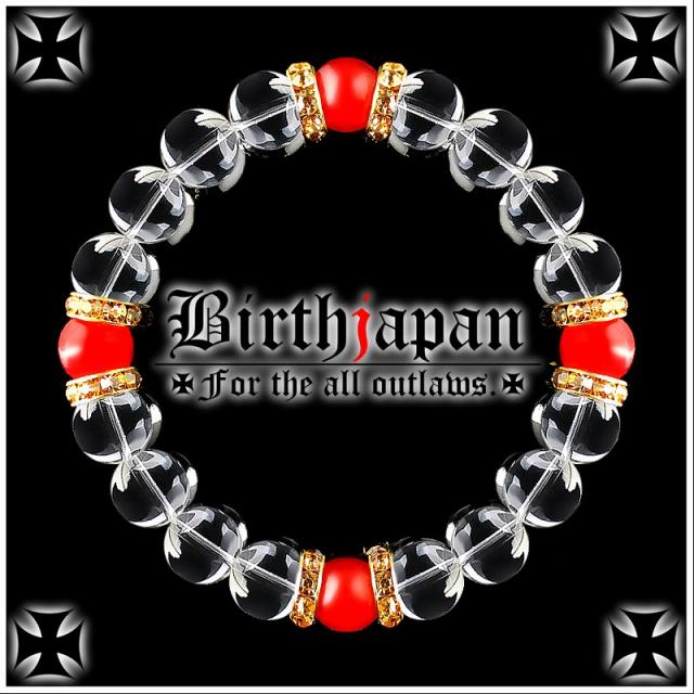 10mm ロンデル×水晶 カーネリアン数珠ブレスレット メンズ開運祈願パワーストーン ヤクザやくざチョイ悪オラオラ系悪羅悪羅系 悪党の店 バースジャパン BIRTHJAPAN