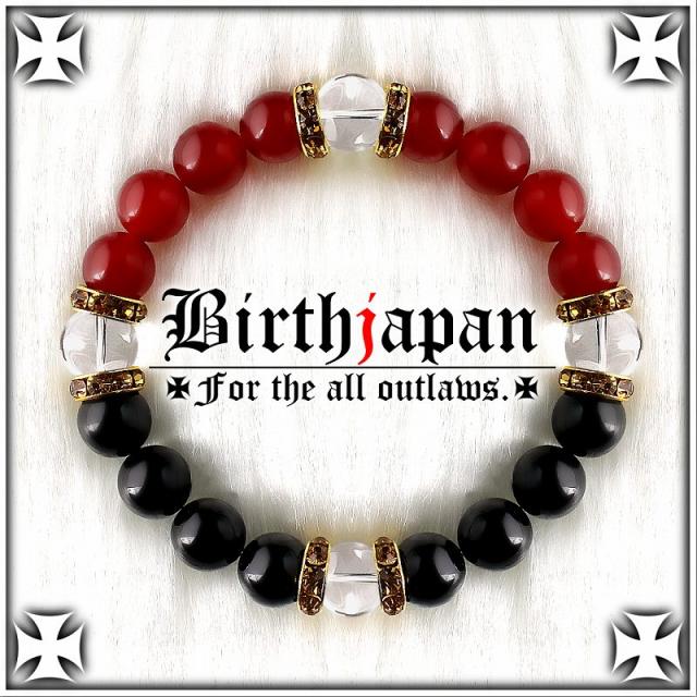 10mm ロンデル×オニキス 水晶 カーネリアン数珠ブレスレット メンズ開運祈願パワーストーン ヤクザやくざチョイ悪オラオラ系悪羅悪羅系 悪党の店 バースジャパン BIRTHJAPAN