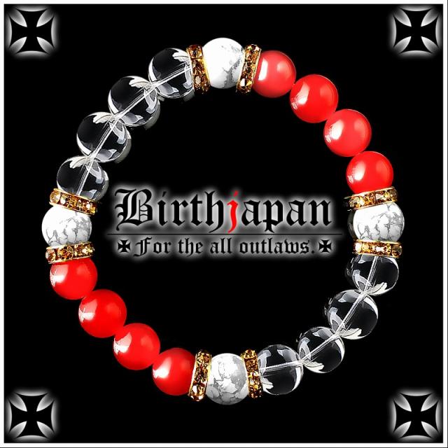 10mm ロンデル×水晶 ハウライト カーネリアン数珠ブレスレット メンズ開運祈願パワーストーン ヤクザチョイ悪オラオラ系悪羅悪羅系 悪党の店 バースジャパン BIRTHJAPAN