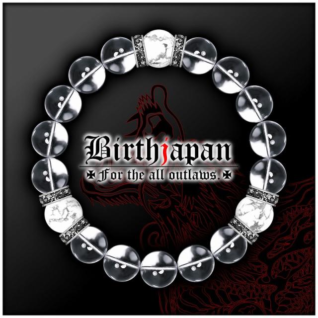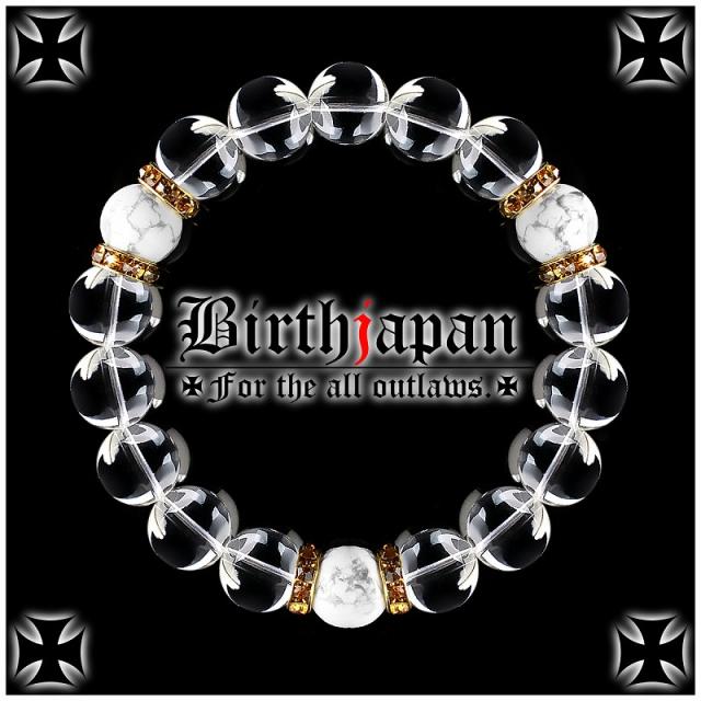 12mm ロンデル×水晶 ハウライト数珠ブレスレット メンズ開運祈願パワーストーン ヤクザやくざチョイ悪オラオラ系悪羅悪羅系 悪党の店 バースジャパン BIRTHJAPAN
