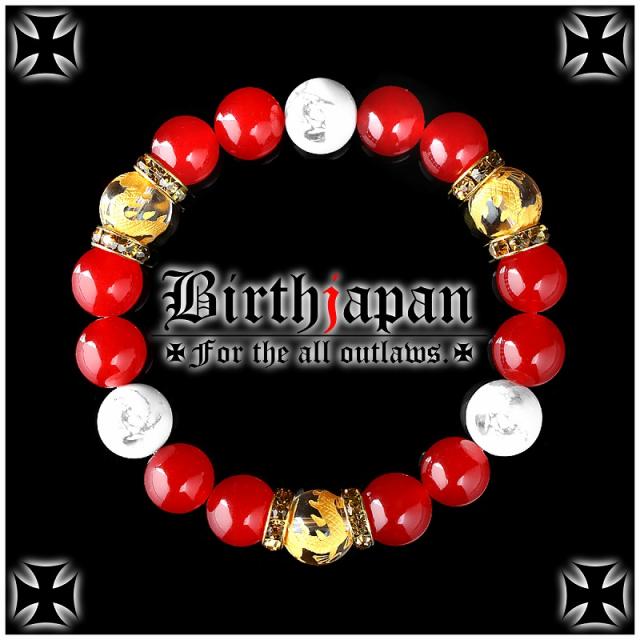 12mm ロンデル×ハウライト カーネリアン 金龍水晶数珠ブレスレット メンズ開運祈願パワーストーン ヤクザチョイ悪オラオラ系悪羅悪羅系 悪党の店 バースジャパン BIRTHJAPAN