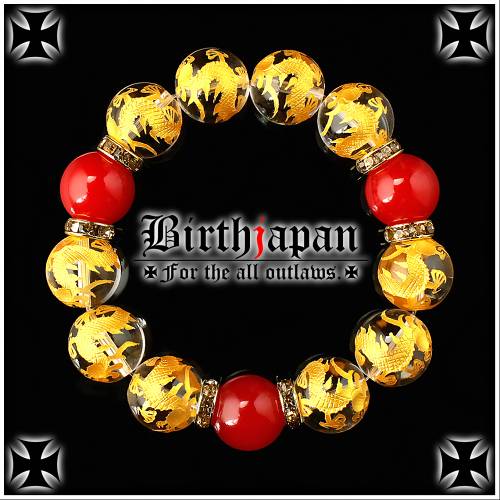 16mm ロンデル×金龍水晶 カーネリアン数珠ブレスレット メンズ開運祈願パワーストーン ヤクザやくざチョイ悪オラオラ系悪羅悪羅系 悪党の店 バースジャパン BIRTHJAPAN