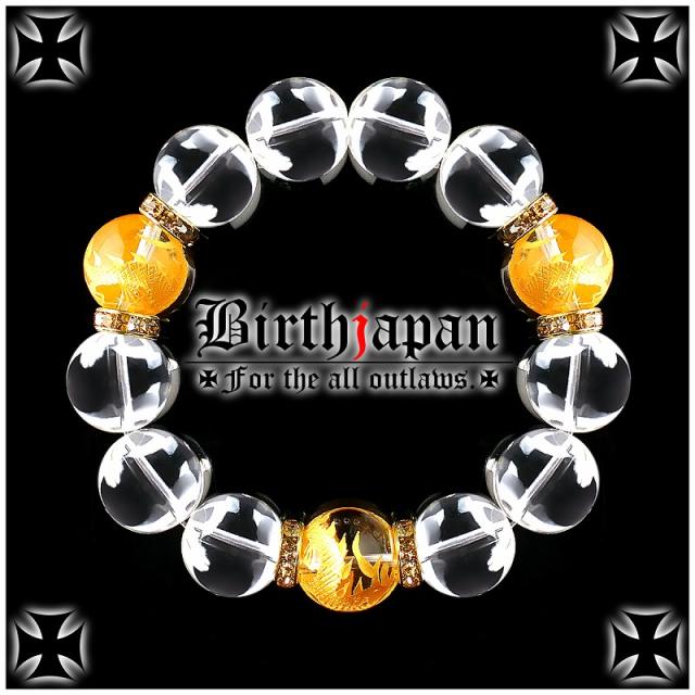 16mm ロンデル×水晶 金龍水晶数珠ブレスレット メンズ開運祈願パワーストーン ヤクザやくざチョイ悪オラオラ系悪羅悪羅系 悪党の店 バースジャパン BIRTHJAPAN