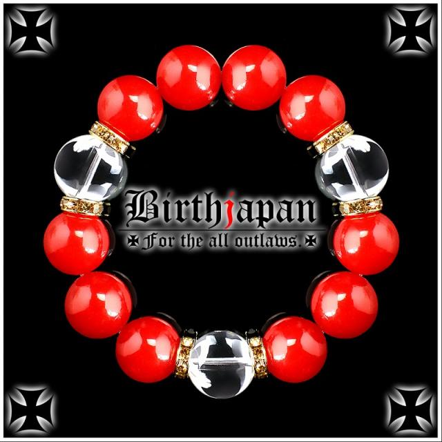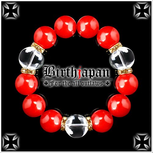16mm ロンデル×カーネリアン 水晶数珠ブレスレット メンズ開運祈願パワーストーン ヤクザやくざチョイ悪オラオラ系悪羅悪羅系 悪党の店 バースジャパン BIRTHJAPAN