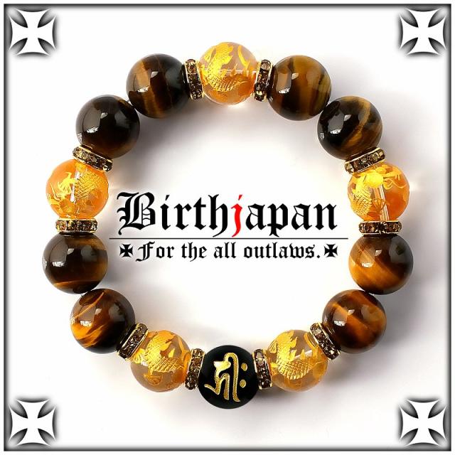 16mm ロンデル×虎目石タイガーアイ 金龍水晶数珠ブレスレット メンズ開運祈願パワーストーン ヤクザやくざチョイ悪オラオラ系悪羅悪羅系 悪党の店 バースジャパン BIRTHJAPAN