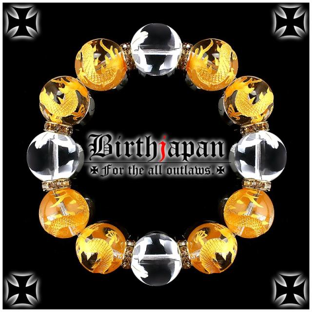 18mm ロンデル×金龍水晶 水晶数珠ブレスレット メンズ開運祈願パワーストーン ヤクザやくざチョイ悪オラオラ系悪羅悪羅系 悪党の店 バースジャパン BIRTHJAPAN