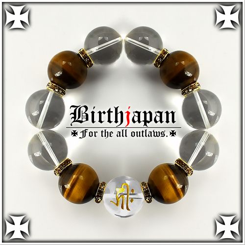 20mm ロンデル×水晶 虎目石タイガーアイ数珠ブレスレット メンズ開運祈願パワーストーン ヤクザやくざチョイ悪オラオラ系悪羅悪羅系 悪党の店 バースジャパン BIRTHJAPAN