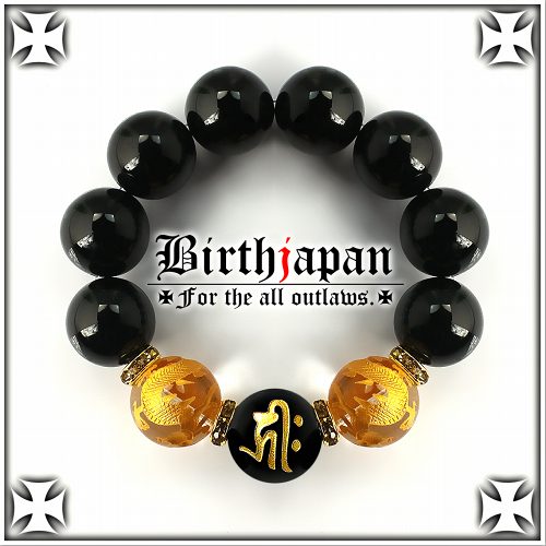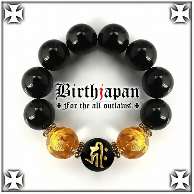 20mm ロンデル×オニキス 金龍水晶数珠ブレスレット メンズ開運祈願パワーストーン ヤクザやくざチョイ悪オラオラ系悪羅悪羅系 悪党の店 バースジャパン BIRTHJAPAN