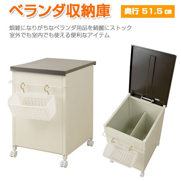 ベランダボックス 奥行51.5cm 小物収納カゴ付 キャスター付 ( ベランダ 収納 ランドリー収納 収納庫 小型 ストッカー ランドリー ボックス 奥行スリム カゴ付 イエロー ブラウン 室内 屋外 )
