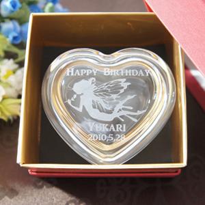 ガラス製のかわいらしいハート型の小物入れにお好みのデザインやメッセージを組み合わせてオリジナルギフトをコーディネイト♪小物入れとしても◎