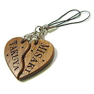 ペアでお使いいただける木製ストラップ。