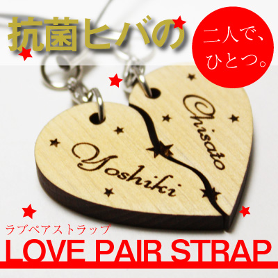 二人でひとつ☆ ラブペアストラップ オリジナルハート ネコポス 名前 翌々営業日出荷 名入れ ギフト プレゼント