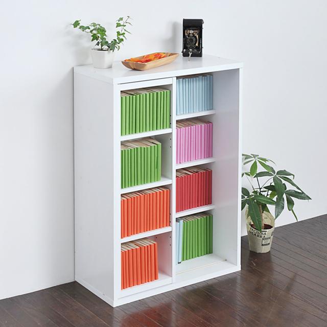 たっぷり本を収納できるスライド棚付きの本棚です。前面の棚は可動式で左右にスライドします。無駄なスペースを作らずに色々なものを収納することができ、収納力がアップします。