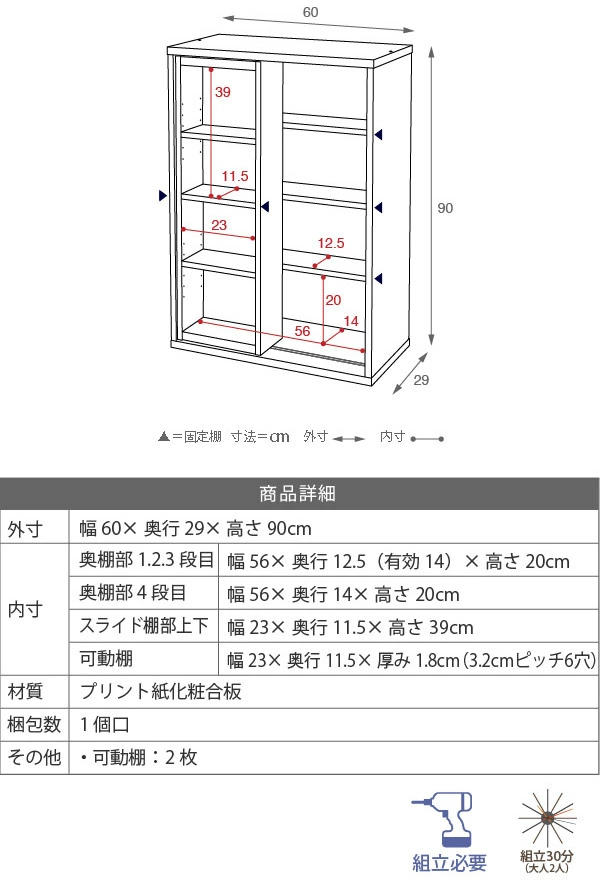 | サイズ | 約 幅60×奥行29×高さ90(cm) |