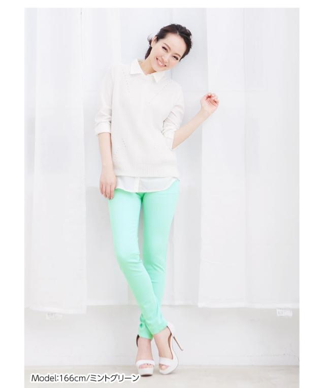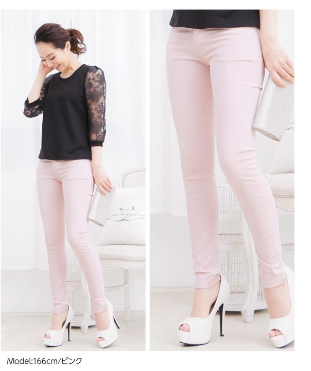 リピーター様殺到!スーパーストレッチで美脚を演出♪ベストセラーのカラースキニー★リアルパンツとは思えないほどの伸縮性でストレスフリーな履き心地!とってもソフトで優しい肌あたりは、まるで履いていないような感覚◎ぴたっとフィットするスキニーラインは、脚長美脚になるように設計しました☆トレンドカラーも取り入れやすいPRICEなので、イロチ買いもオススメ♪