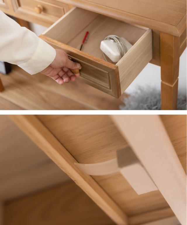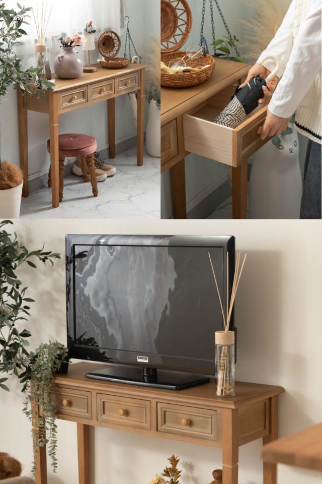 天然木の木目を活かした引出し付きコンソールデスク