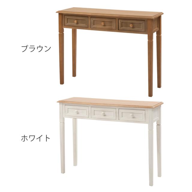 コンソールデスク 幅100cm 天然木 アンティーク調 ( コンソール テーブル スリム ディスプレイ 飾り棚 棚 作業台メイク台 引き出し 収納 玄関 リビング ヴィンテージ調 ナチュラル カントリー調 木製 )