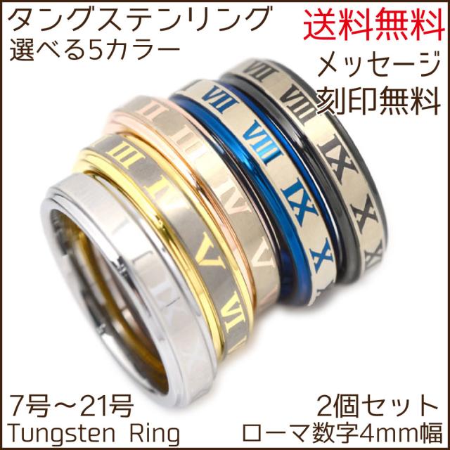 ペアリング 刻印無料 送料無料 タングステン ローマ数字 4mm 幅 2個ペア メニー リング 指輪