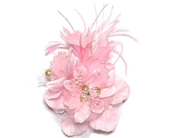DCX056 ピンク 浴衣・結婚式・花・入園式・卒園式・パーティー・二次会・髪飾り・羽付コサージュ・クリップ2WAYタイプ