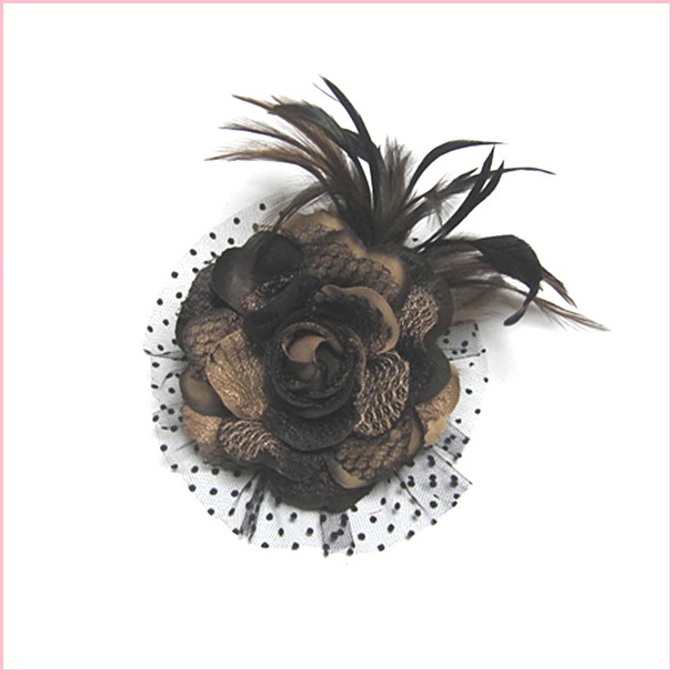 DCX061 ブラウン 浴衣・結婚式・花・入園式・卒園式・パーティー・二次会・髪飾り・羽付コサージュ・クリップ2WAYタイプ