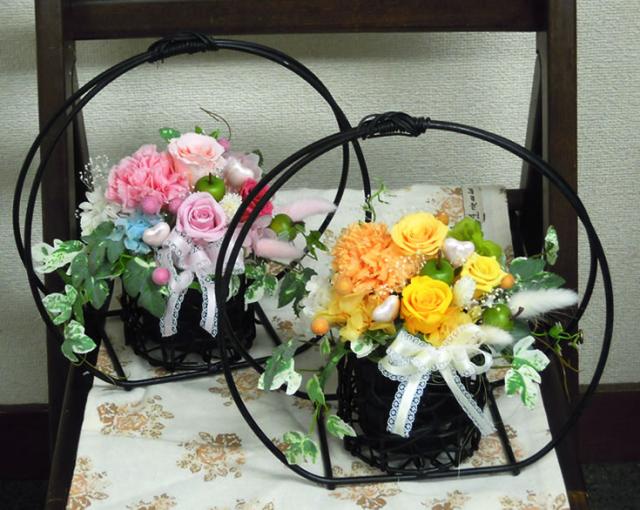 淡い色合いのプリザーブドを使用し、やさしい雰囲気を演出しました。