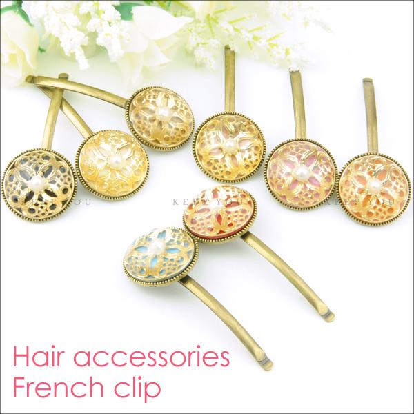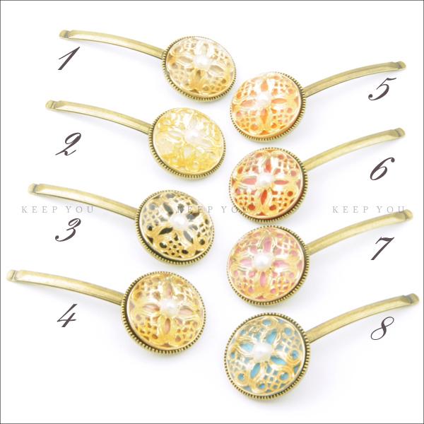 【メール便対応】ヘアピン エスニック ボタン フレンチ クリップ 8色展開 ヘアアクセサリー【レディース アンティーク ヘアピン アクセサリー/ヘアピン/ヘアーアクセサリー ガールズ コレクション S Cawaii系 109系 アクセサリー】hair-acc-7 ┃