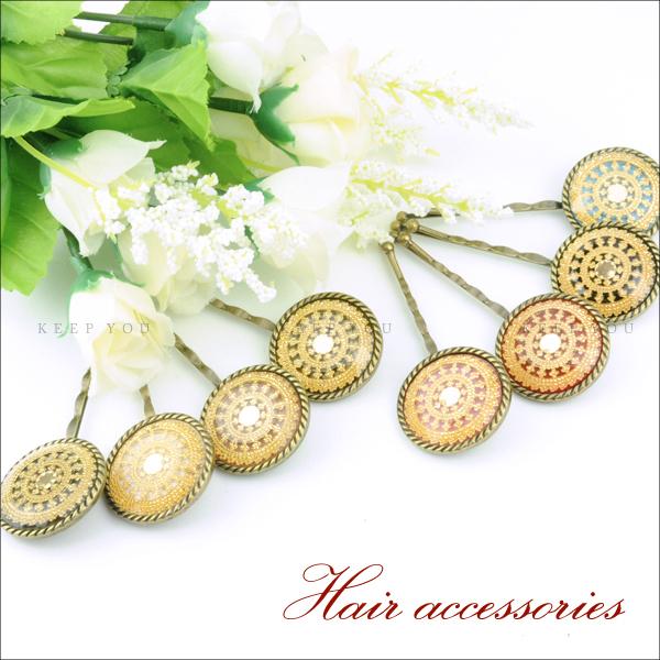 【メール便対応】ヘアピン エスニック ボタン 8色展開 ヘアアクセサリー【レディース アンティーク ヘアピン アクセサリー/ヘアピン/ヘアーアクセサリー ガールズ コレクション S Cawaii系 109系 アクセサリー】hair-acc-9 ┃