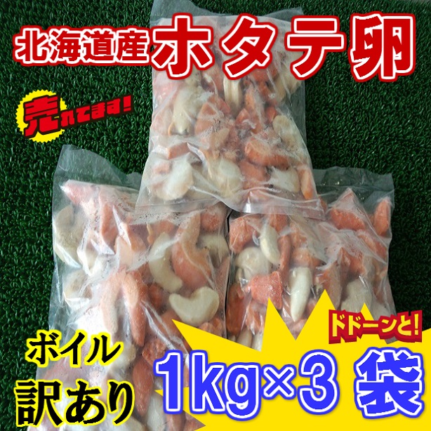 無添加 訳あり ボイル ホタテ卵 1kg×3袋 冷凍 ギフトプレゼント 贈答 海鮮 グルメ 魚介 海産物 お歳暮
