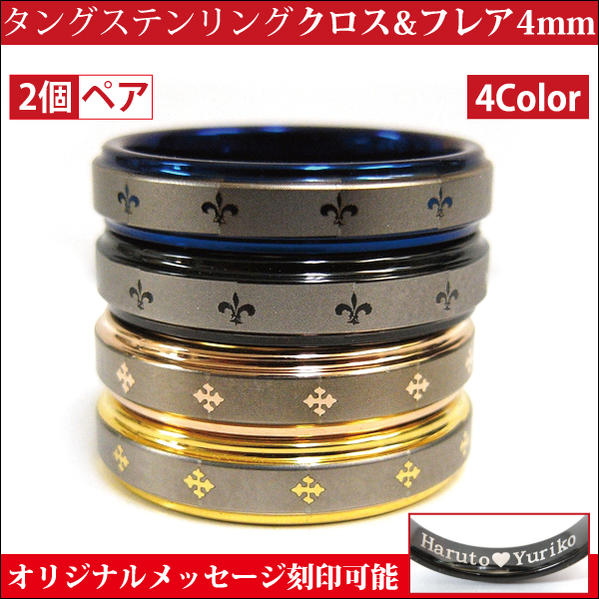 ペアリング 刻印無料 送料無料 タングステン メニー リング クロスorフレア 平打2段 リング 4mm 幅 指輪