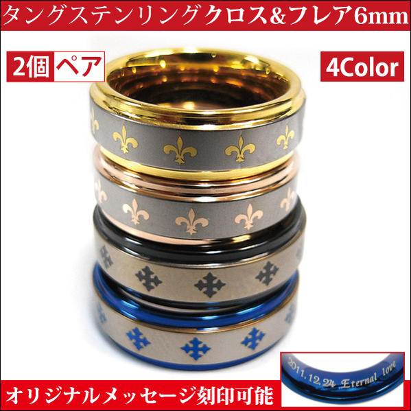 ペアリング 刻印無料 送料無料 タングステン メニー リング クロスorフレア 平打2段 リング 6mm 幅 指輪