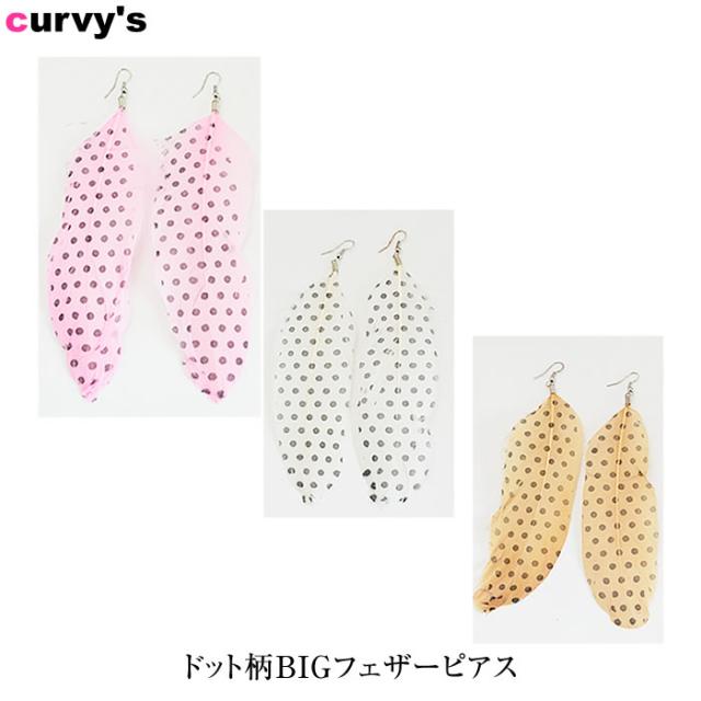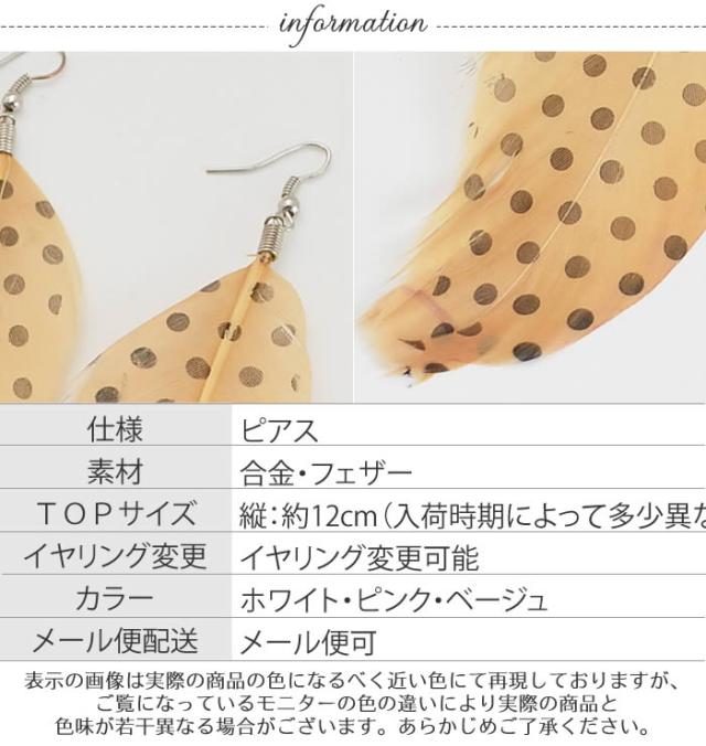 ピアス ゆうメール便送料無料 ピアス アクセサリー ジュエリー 結婚式 パーティ フェザー 羽 ドット ドット柄BIGフェザーピアス カービーズ