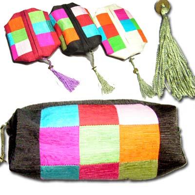 色鮮やかな生地をパッチワークでまとめ上げポーチにしてみました。