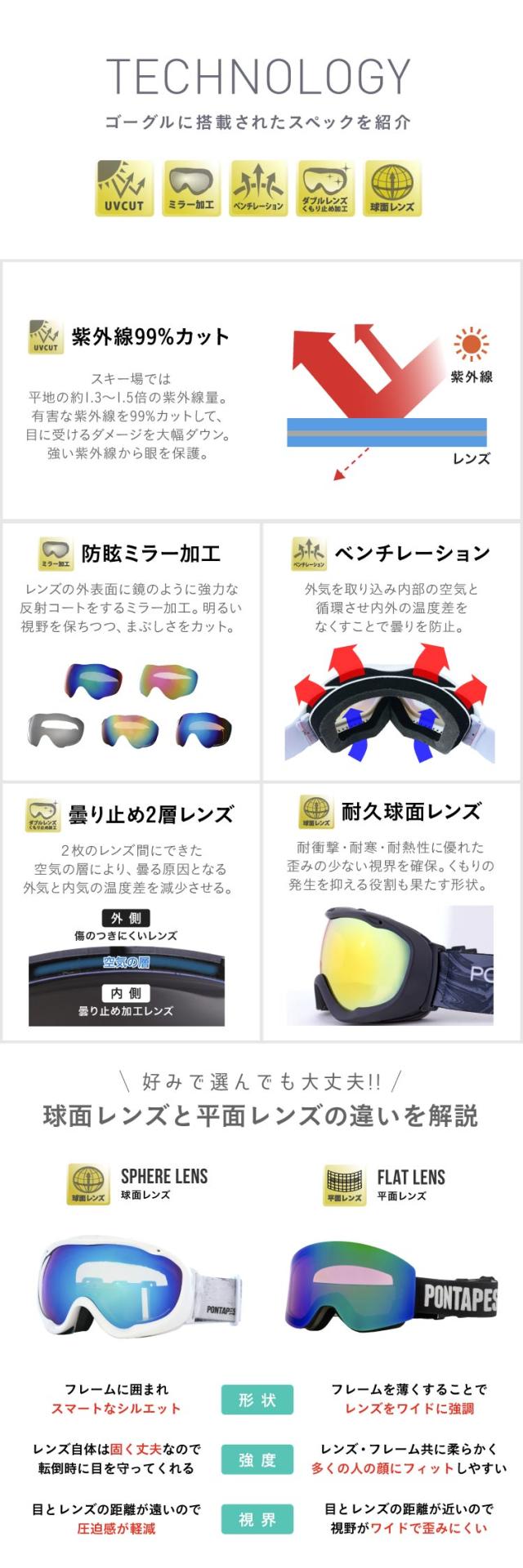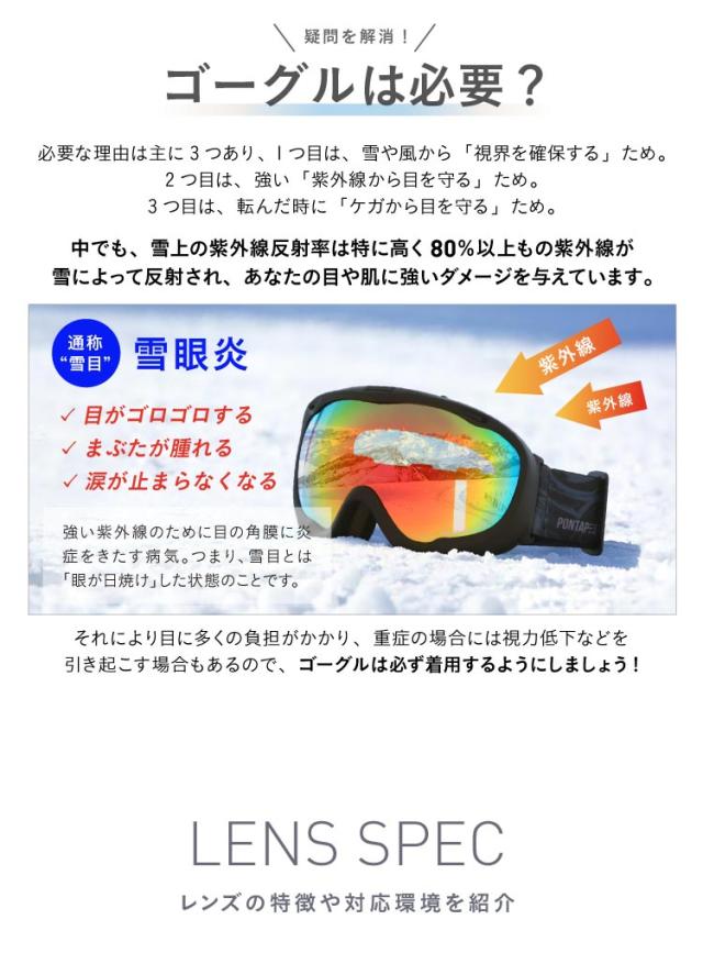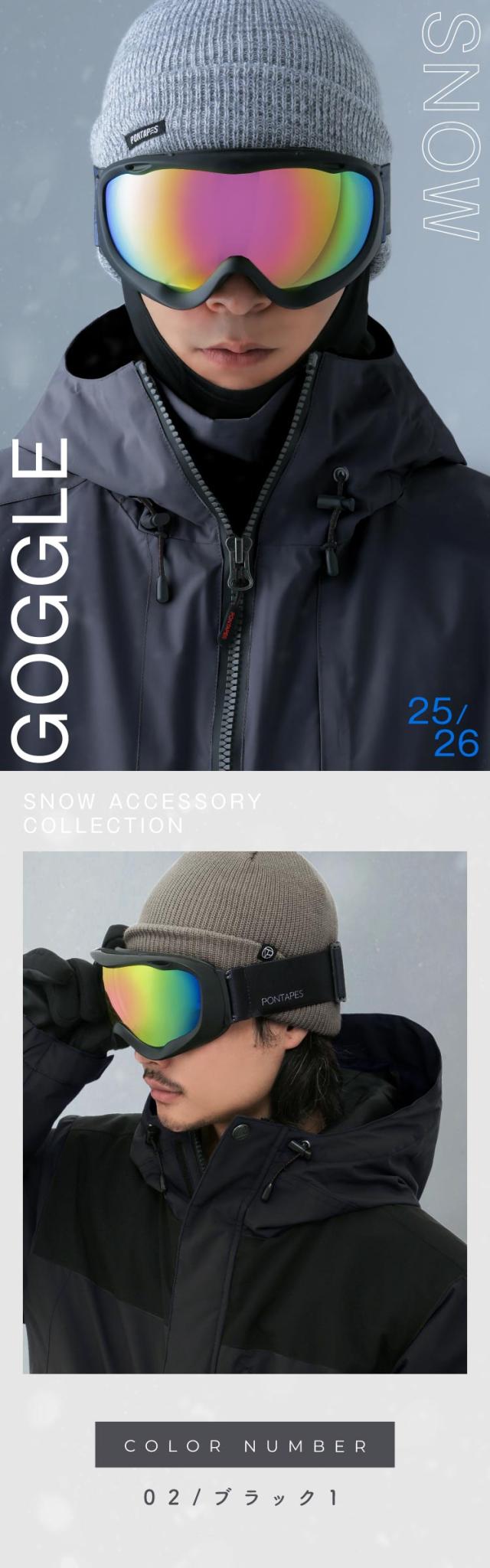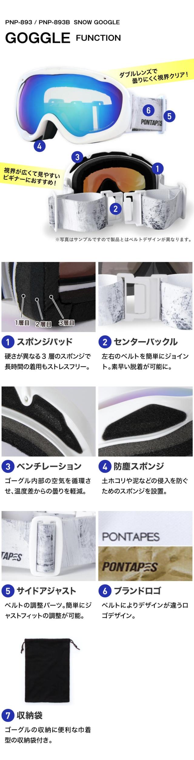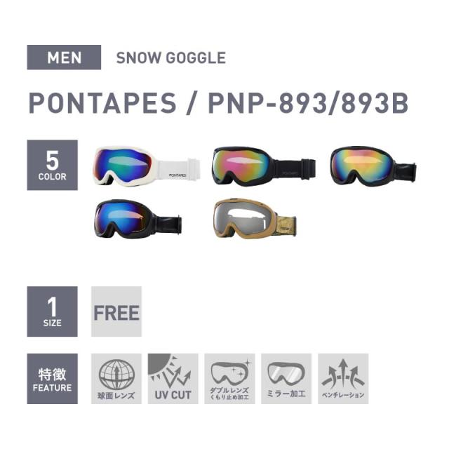 スノーボード ゴーグルメンズ スノボ スキー スノー ダブルレンズ UVカット 球面レンズ レボミラー加工 収納袋付き ヘルメット対応 PONTAPES/ポンタぺス PNP-893