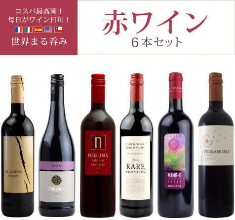 ポイント5倍! / 酒宝庫MASHIMO “世界まる呑み” 納得! 赤ワイン6本セット 送料無料 /