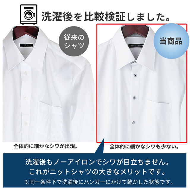 - ニットシャツといっても、ニット感はそんなにありませんので、普通のワイシャツと同じ使い方ができます。