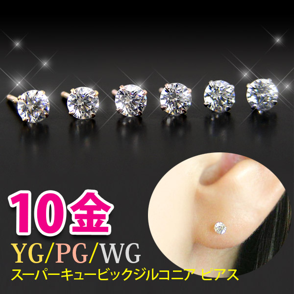 【日本製】 スーパー キュービックジルコニア ピアス K10YG/PG/WG キュービック cz 3mm 『キャッチ別売』