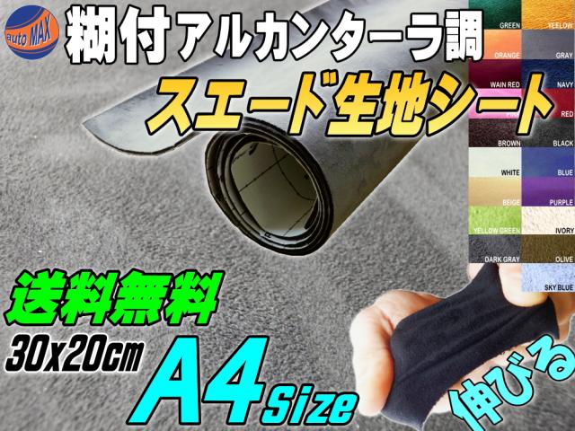 スエード (A4) 灰 【メール便 送料無料】 幅30cm×20cm 伸びる スエード生地シート 糊付き グレー アルカンターラ調 A4サイズ スエードシート バックスキン 曲面対応 カッティング可 インテリア ウォールクロス 壁紙 天井 張替 革 シール ステッカー スウェード