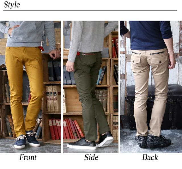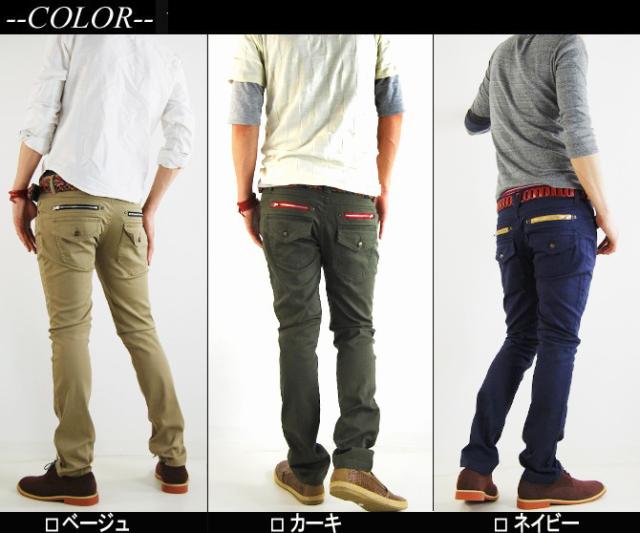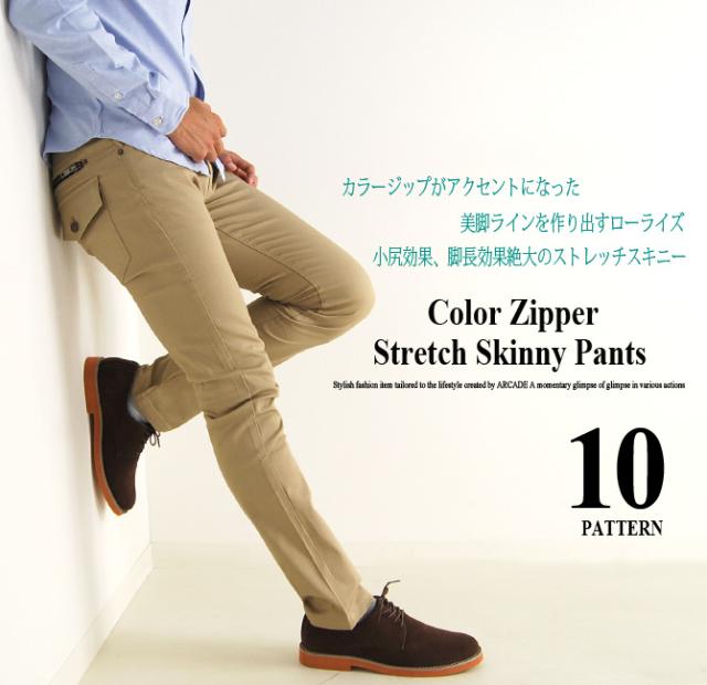チノパン メンズ ストレッチ 脚長 美脚 小尻 メンズ 春 夏 新作 おしゃれ コーデ メンズファッション カラージッパー ストレッチ スキニーパンツ メンズ ベージュ 黒スキニー