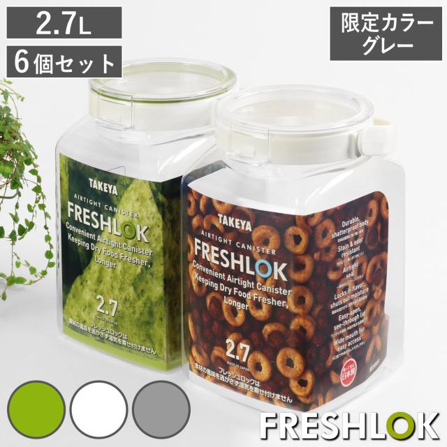 【限定カラーグレー】 保存容器 2.7L フレッシュロック 角型 お得な同色6個セット 持ち手付き ( キッチン収納 キャニスター ストッカー 密閉 透明 日本製 調味料入れ プラスチック ワンタッチ 引き出し収納 大容量 FRESHLOK )