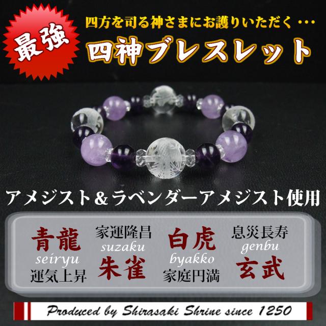 運気上昇四神パワー!開運風水四神ブレスレット【ラベンダーアメジスト&アメジスト】■兼用■水晶彫り■